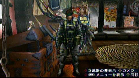 この装備になると、一部のSE、BGMが MGS仕様に変更され、「掛け声」 などのアクションを行った時に発せられる声が スネークになるんですw。