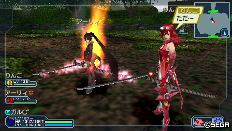 ふと りんごさんを見ると、武器を持ちながらナノブラをしていました。