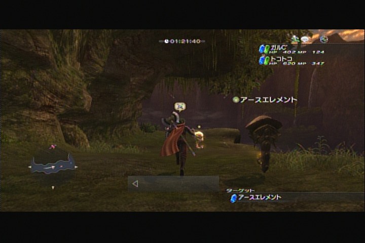 このゲームで武器を構える為には、敵を ロックオンしていないと無理なので手ごろな エレメント系のエネミーを利用して撮影することになりました。