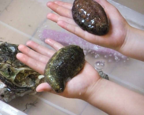 見学に来ていた 少年(幼稚園児かな?) が ふれあいコーナーで ずーーーーーっとナマコを握っていたので一枚撮ってみました。