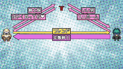 相関図はちょっとふざけていますが、こんなことができるゲームはなかなかないので、