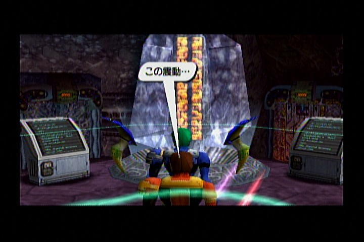 アッシュ「 あれだよ。あの上にある石碑の脇の装置だ。」