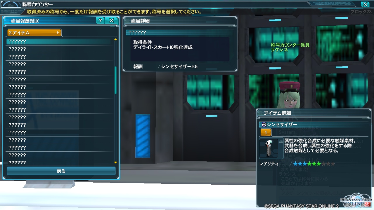 称号ゲットの条件に「デイライトスカーを10段階強化」というものがありました。