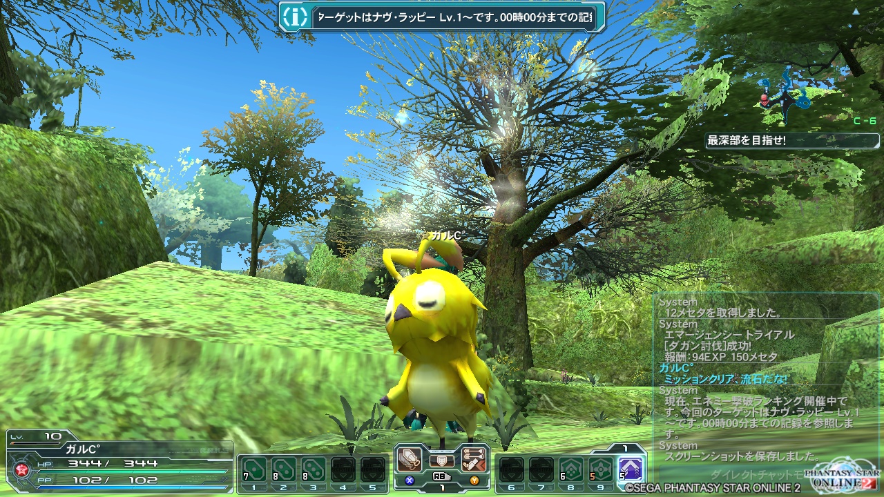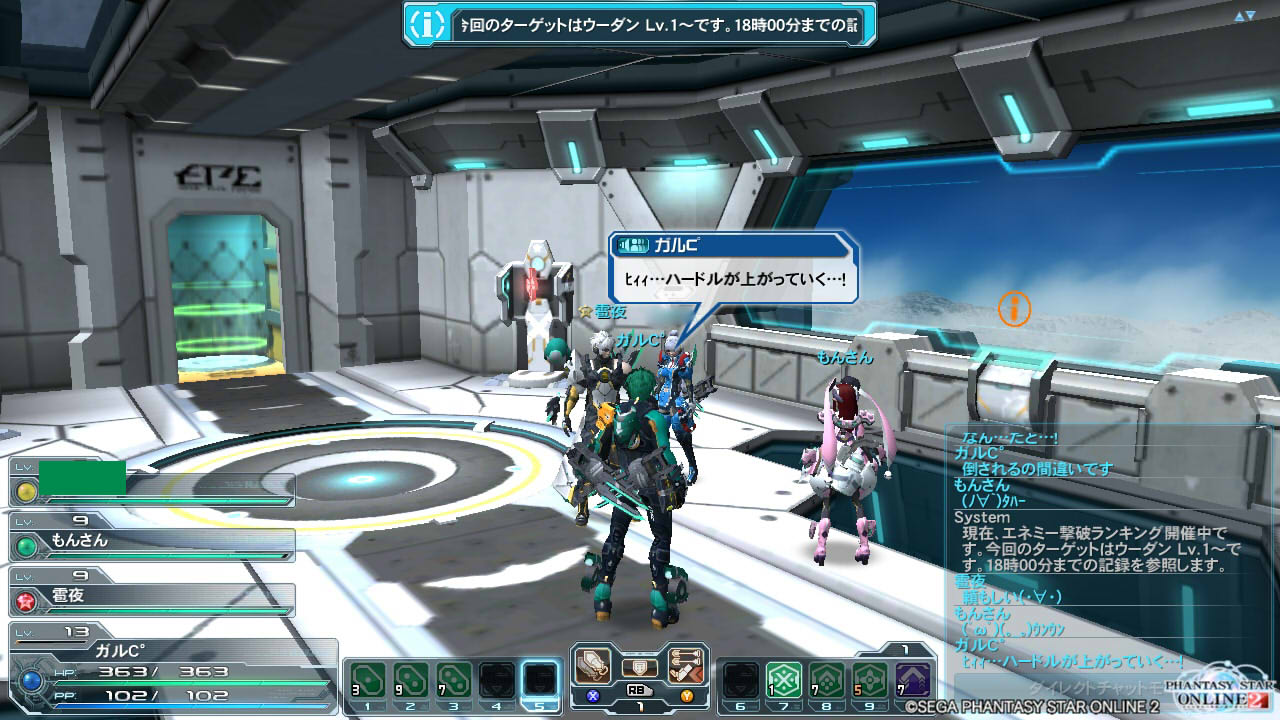 しばらくすると1時間限定の緊急ミッションが入ったので、一番人の多いブロックに移り、野良歓迎のレベルアップ部屋を建ててマルチパーティエリアでに篭っていました。