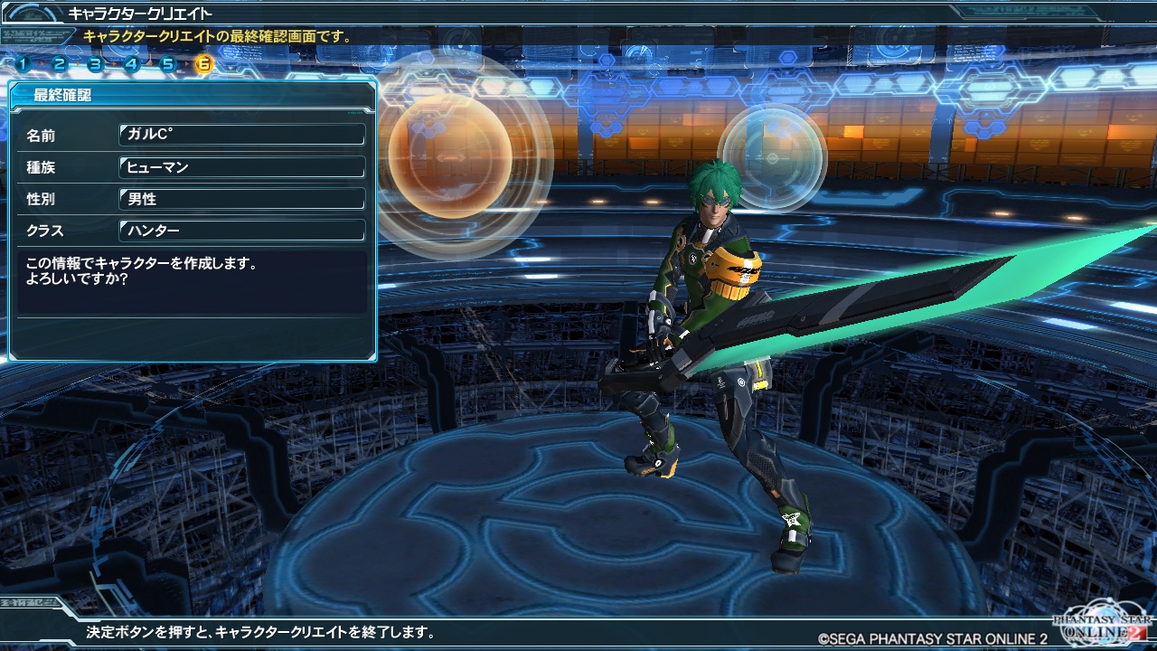 キャラ名はいつものように「ガルC°」緑髪褐色肌グラサンのヒュマ男です。