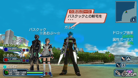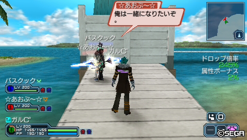 大型エネミーを片づけた後は、あおぷさんが背景の孤島を見つめて・・・